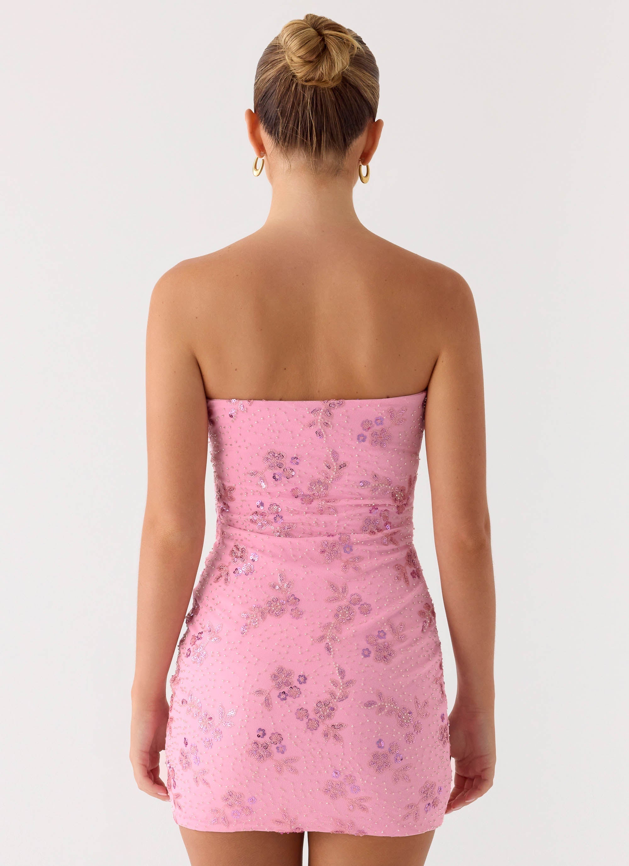 The Push Back Beaded Sequin Mini Dress is made for nights that glimmer long after sunset. With a sleek strapless neckline and sculpting stretch fit, this mini is adorned with intricate beaded sequin embroidery that catches every hint of light. Fully lined with secure silicone tape, it’s your go-to for elevated party moments.